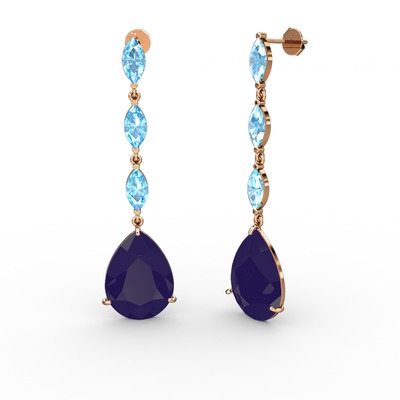 Lacivert akrilik ve akuamarin 8 ayar rose altın küpe