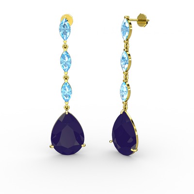 Lacivert akrilik ve akuamarin 925 ayar altın kaplama gümüş küpe
