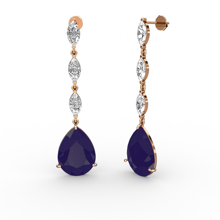 Lacivert akrilik ve beyaz zirkon 14 ayar rose altın küpe