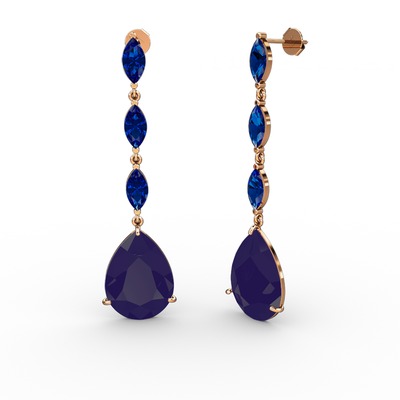 Lacivert akrilik ve lab safir 14 ayar rose altın küpe