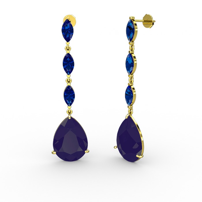 Lacivert akrilik ve lab safir 8 ayar altın küpe