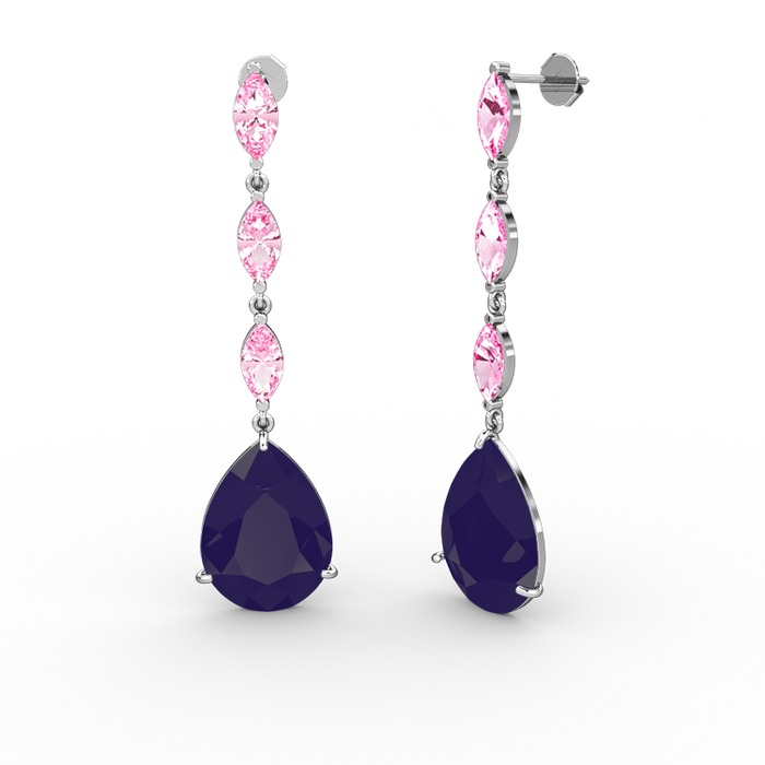 Lacivert akrilik ve pembe kuvars 925 ayar gümüş küpe