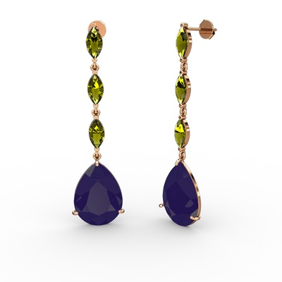 Lacivert akrilik ve peridot 14 ayar rose altın küpe