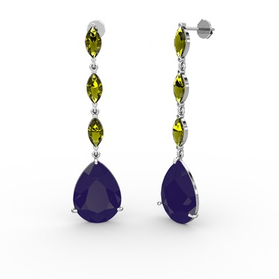 Lacivert akrilik ve peridot 925 ayar gümüş küpe