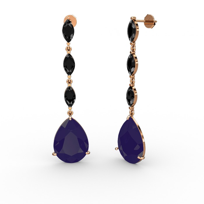 Lacivert akrilik ve siyah zirkon 8 ayar rose altın küpe