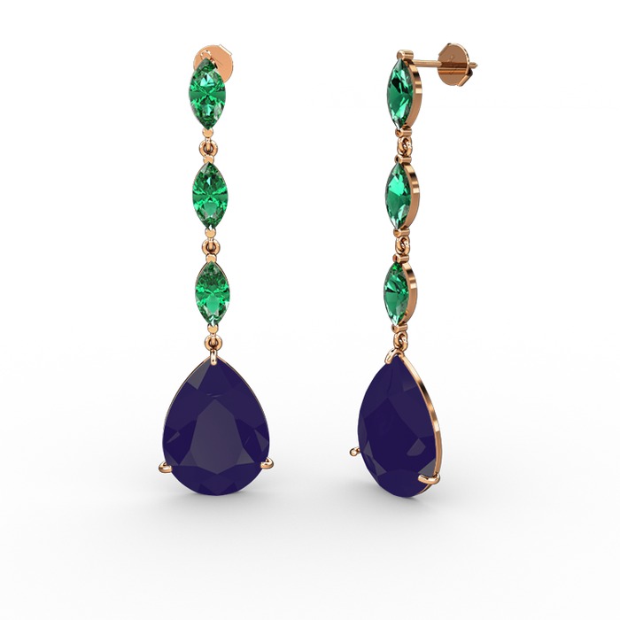 Lacivert akrilik ve yeşil kuvars 925 ayar rose altın kaplama gümüş küpe