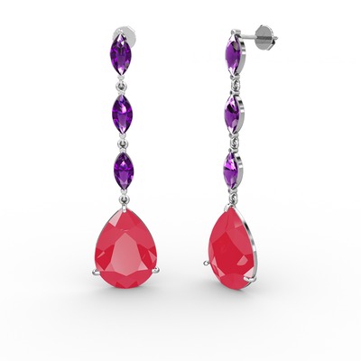 Neon pembe akrilik ve ametist 925 ayar gümüş küpe