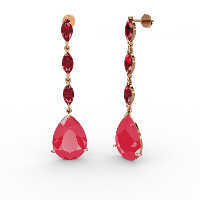 Neon pembe akrilik ve garnet 925 ayar rose altın kaplama gümüş küpe
