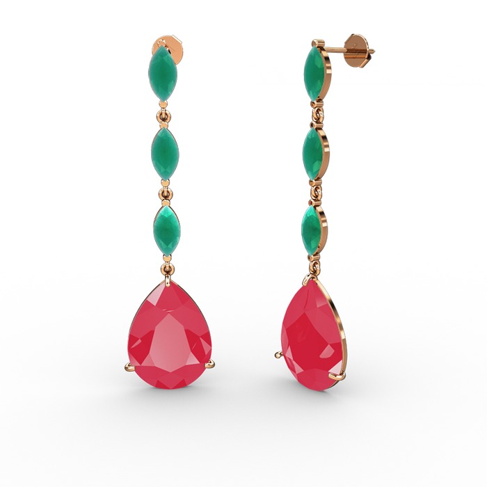 Neon pembe akrilik ve kök zümrüt 8 ayar rose altın küpe