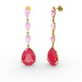 Neon pembe akrilik ve pembe kuvars 18 ayar altın küpe