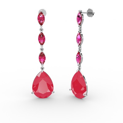 Neon pembe akrilik ve rodolit garnet 925 ayar gümüş küpe