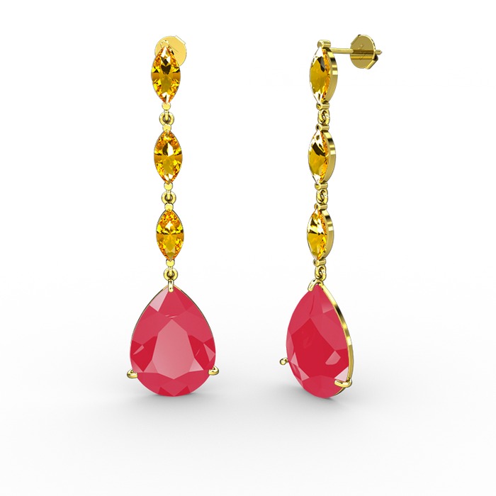 Neon pembe akrilik ve sitrin 18 ayar altın küpe