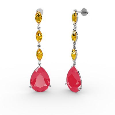 Neon pembe akrilik ve sitrin 925 ayar gümüş küpe
