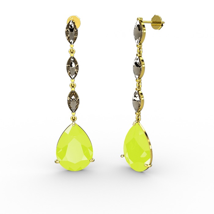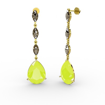 Neon sarı akrilik ve dumanlı kuvars 925 ayar altın kaplama gümüş küpe