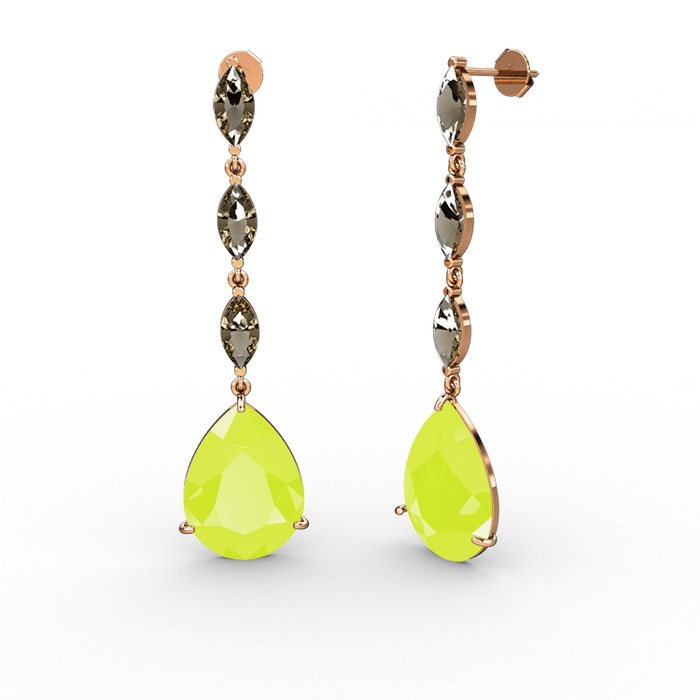 Neon sarı akrilik ve dumanlı kuvars 925 ayar rose altın kaplama gümüş küpe