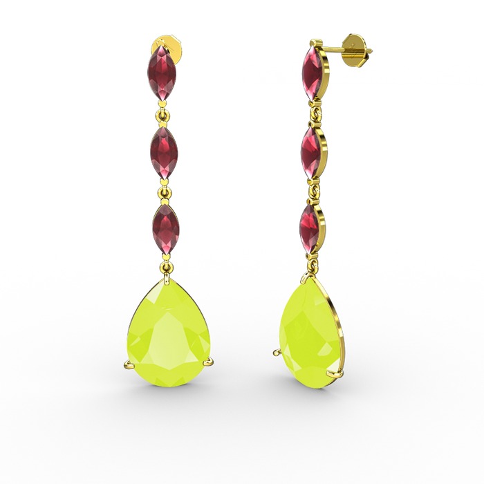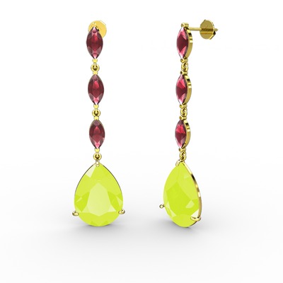 Neon sarı akrilik ve kök yakut 18 ayar altın küpe
