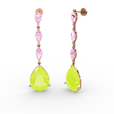 Neon sarı akrilik ve pembe kuvars 925 ayar rose altın kaplama gümüş küpe