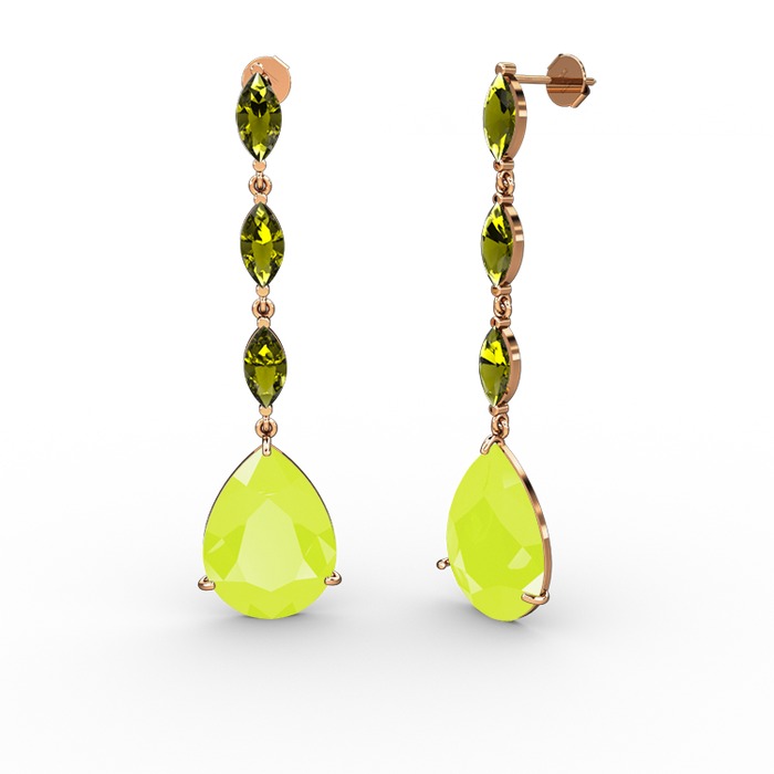 Neon sarı akrilik ve peridot 8 ayar rose altın küpe