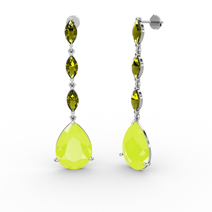 Neon sarı akrilik ve peridot 925 ayar gümüş küpe