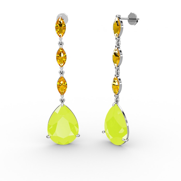 Neon sarı akrilik ve sitrin 18 ayar beyaz altın küpe