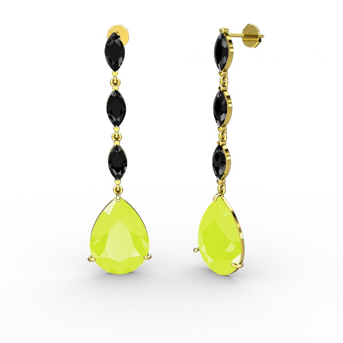 Neon sarı akrilik ve siyah zirkon 925 ayar altın kaplama gümüş küpe