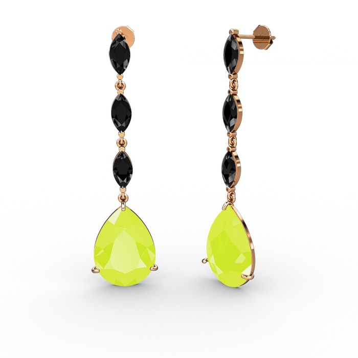Neon sarı akrilik ve siyah zirkon 925 ayar rose altın kaplama gümüş küpe