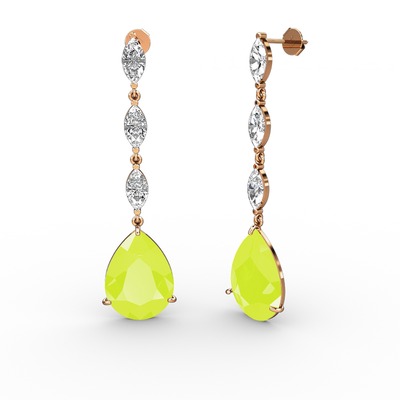 Neon sarı akrilik ve swarovski 14 ayar rose altın küpe