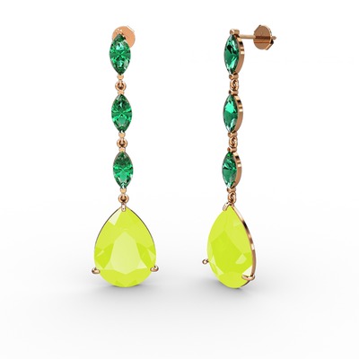 Neon sarı akrilik ve yeşil kuvars 14 ayar rose altın küpe