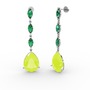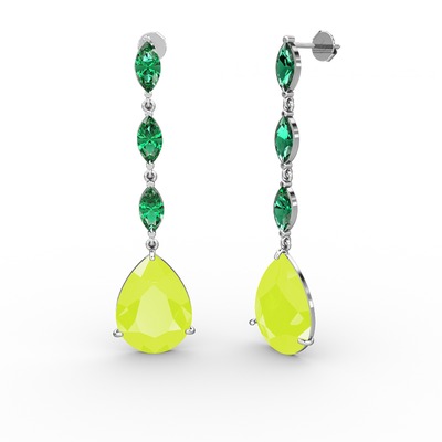 Neon sarı akrilik ve yeşil kuvars 18 ayar beyaz altın küpe