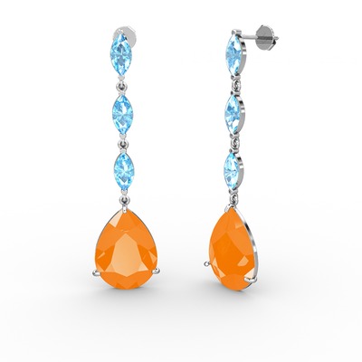 Neon turuncu akrilik ve akuamarin 925 ayar gümüş küpe