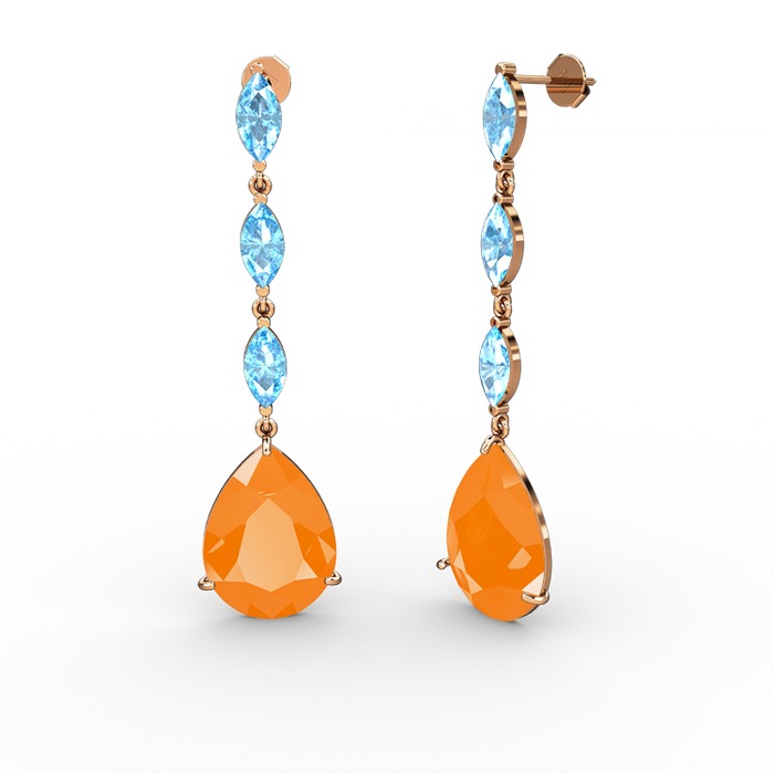 Neon turuncu akrilik ve akuamarin 925 ayar rose altın kaplama gümüş küpe