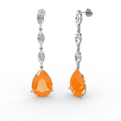 Neon turuncu akrilik ve beyaz zirkon 8 ayar beyaz altın küpe