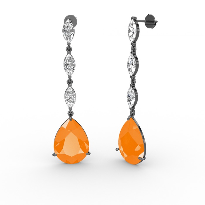 Neon turuncu akrilik ve beyaz zirkon 925 ayar siyah rodyum kaplama gümüş küpe