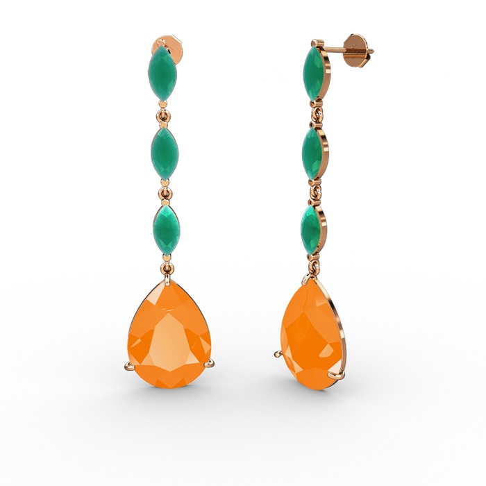 Neon turuncu akrilik ve kök zümrüt 18 ayar rose altın küpe