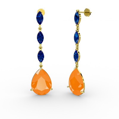 Neon turuncu akrilik ve lab safir 8 ayar altın küpe