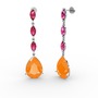 Neon turuncu akrilik ve rodolit garnet 18 ayar beyaz altın küpe