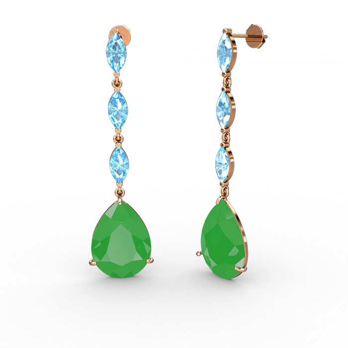 Neon yeşil akrilik ve akuamarin 8 ayar rose altın küpe