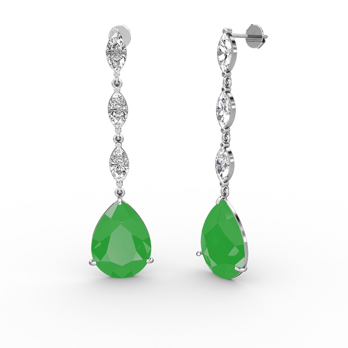 Neon yeşil akrilik ve beyaz zirkon 18 ayar beyaz altın küpe