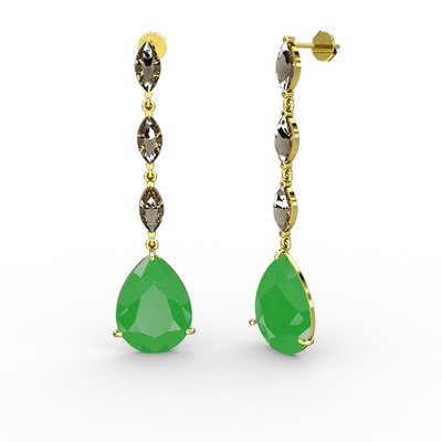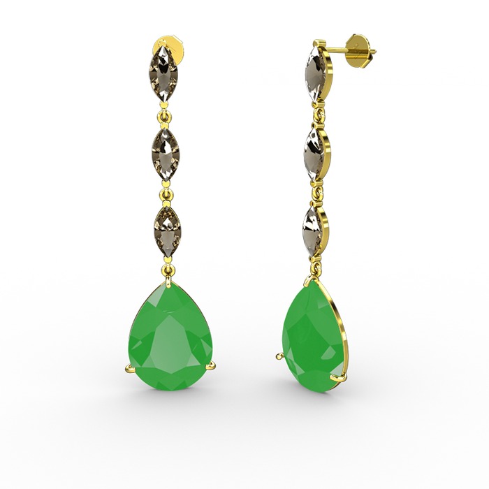 Neon yeşil akrilik ve dumanlı kuvars 14 ayar altın küpe