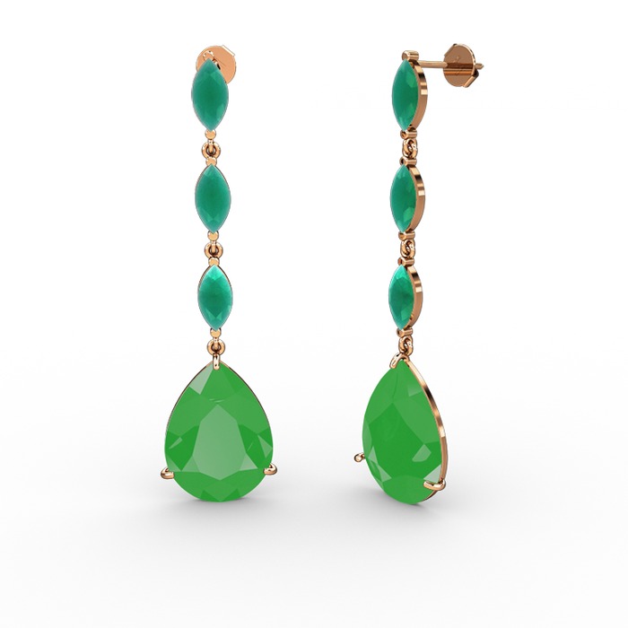 Neon yeşil akrilik ve kök zümrüt 8 ayar rose altın küpe