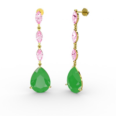 Neon yeşil akrilik ve pembe kuvars 8 ayar altın küpe