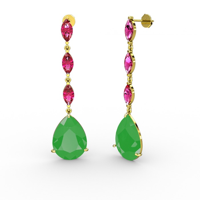 Neon yeşil akrilik ve rodolit garnet 18 ayar altın küpe