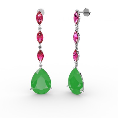 Neon yeşil akrilik ve rodolit garnet 925 ayar gümüş küpe