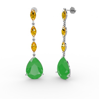 Neon yeşil akrilik ve sitrin 925 ayar gümüş küpe