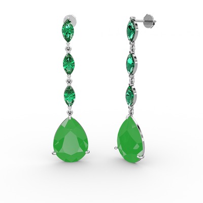 Neon yeşil akrilik ve yeşil kuvars 18 ayar beyaz altın küpe