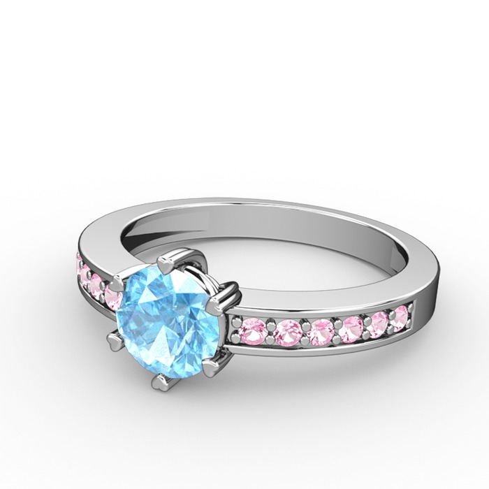 Akuamarin ve pembe kuvars 925 ayar gümüş yüzük