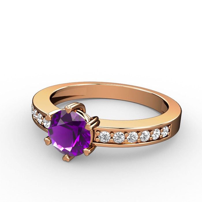 Ametist ve beyaz zirkon 925 ayar rose altın kaplama gümüş yüzük