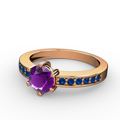 Ametist ve lab safir 18 ayar rose altın yüzük