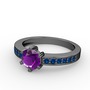 Ametist ve lab safir 925 ayar siyah rodyum kaplama gümüş yüzük