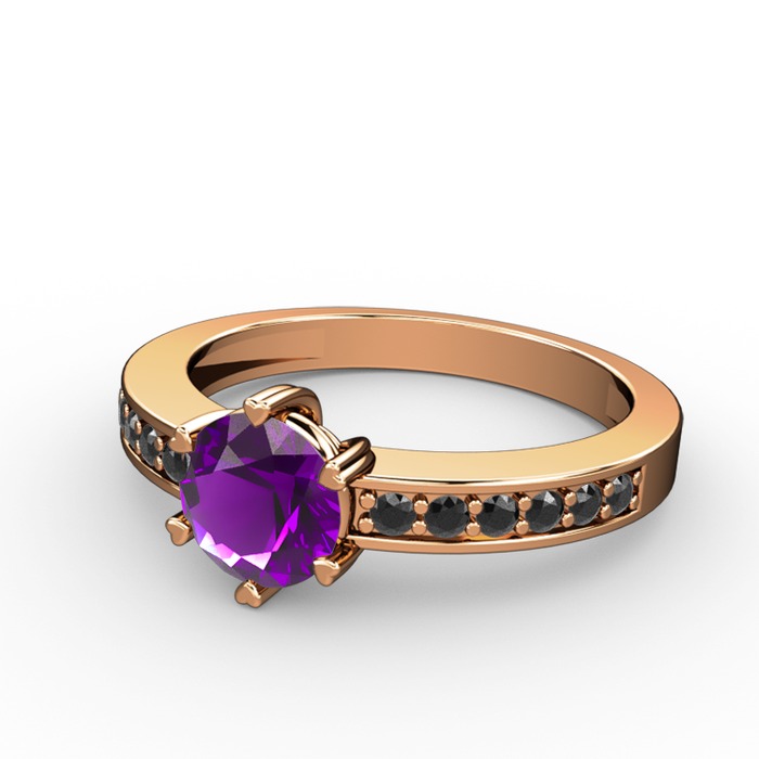 Ametist ve siyah zirkon 925 ayar rose altın kaplama gümüş yüzük